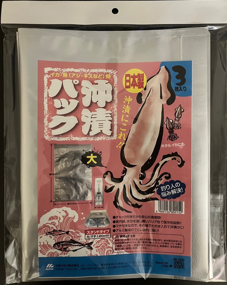 釣ってすぐに沖漬できる、スタンドタイプアルミ袋です。