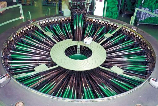 樹脂素材を加工し、糸を撚り、編み上げる技術と設備